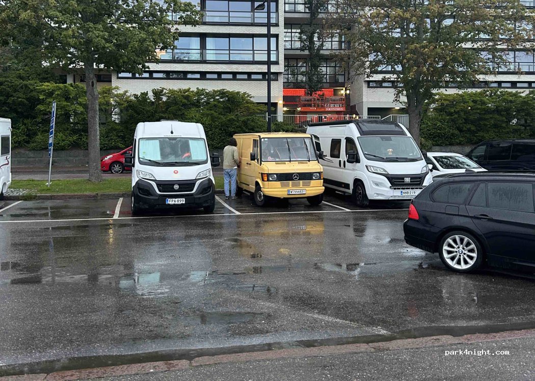 Parking "utile" pour passer une nuit ou deux à Helsinki proche du centre. Il y a néanmoins du passage, aucun banc à proximité et une seule petite poubelle. Gratuit le week-end, payant les autres jours de 9h à 21h (2€/h).