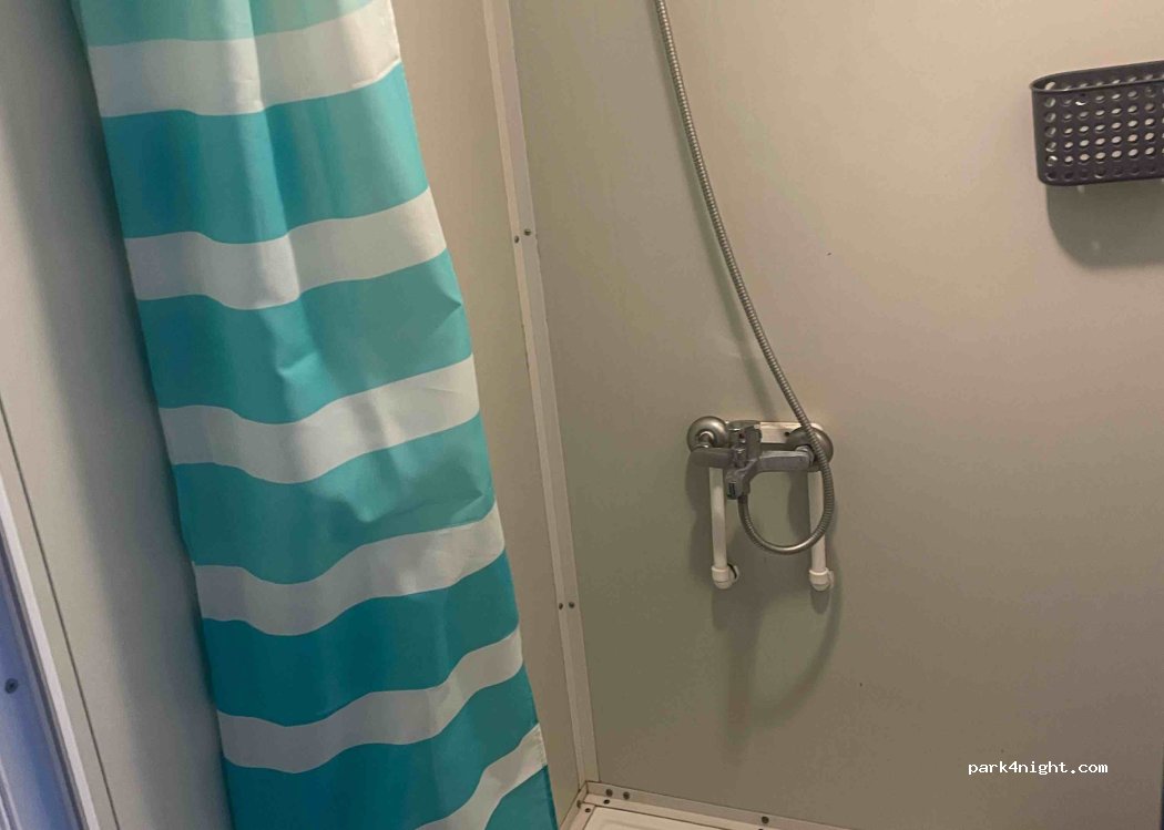2 co-ed showers and 2 toilets. Simple camping, suitable for transit. Small camper, 3 people without electricity: 25 EUR.