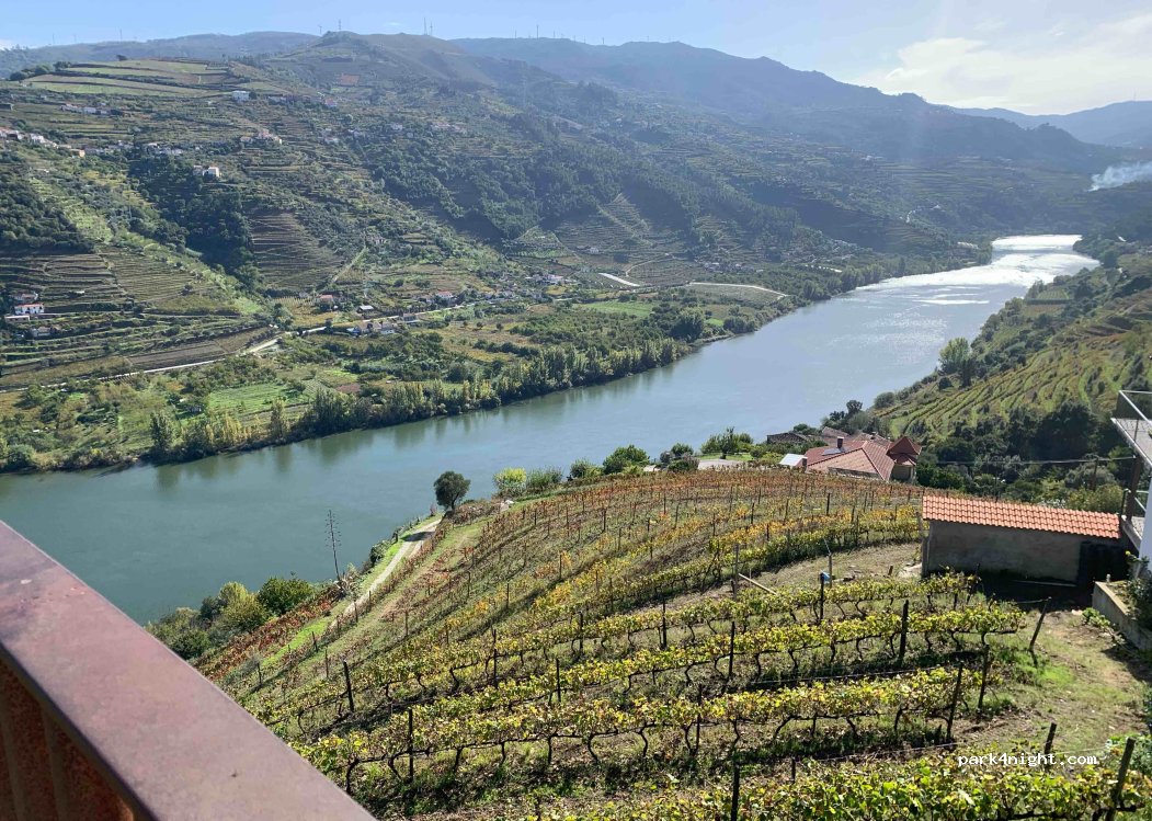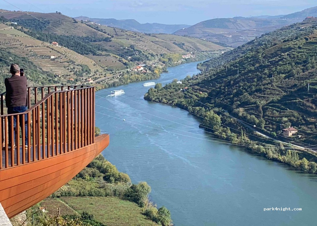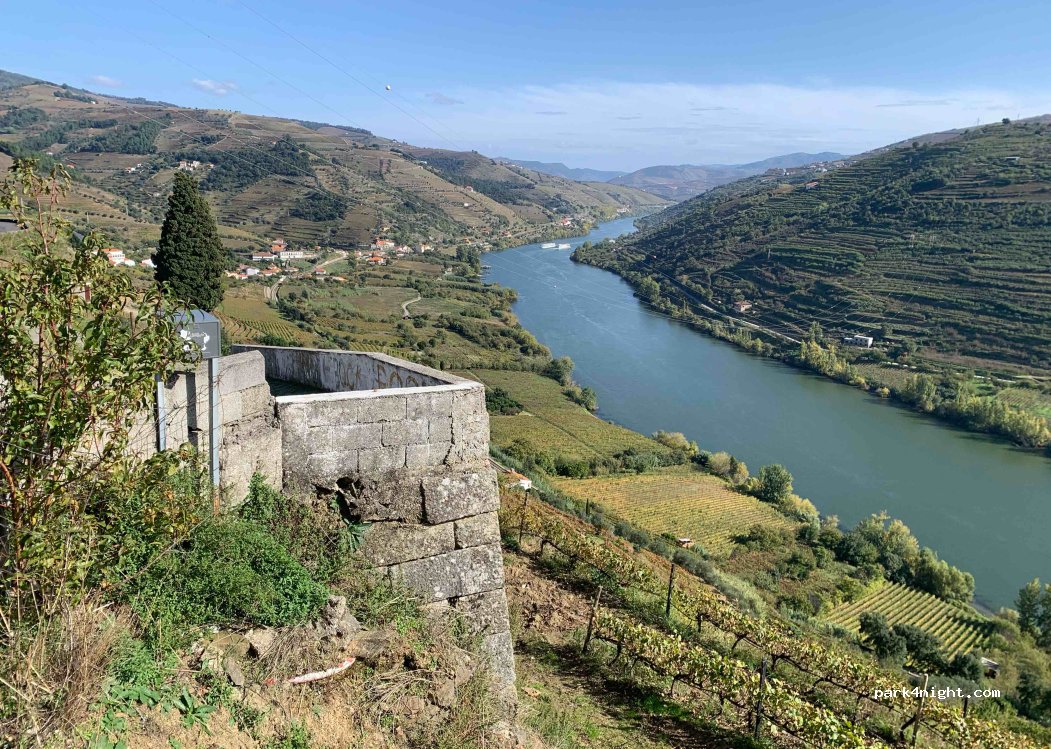 View point named “Miradouro do Imaginário” with small P on crossing of main roads and another private of small buffet. Extended panorama over Douro river and both mountainous riversides.