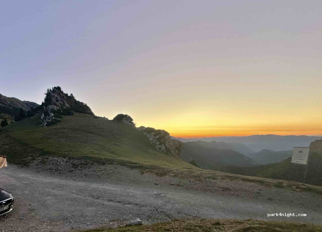 Elargissement de la piste au Col de Collell. On y accède par une piste non goudronnée adaptée à un van (je pense pas pour AC) à environ 5 km après le parking du belvédère de Gresolet et du refuge Lasen. Bel endroit bucolique et solitaire seul en compagnie de vaches dans les prairies environnantes. Sans aucun service.