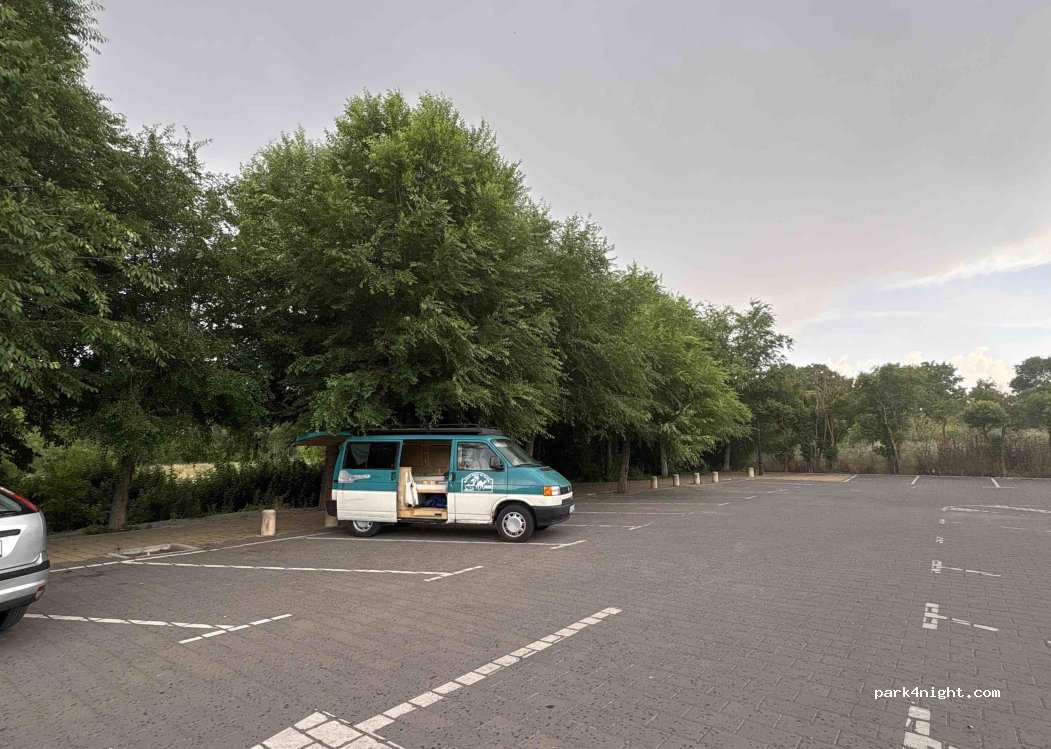 Parking à côté de la piscine municipale. Ce sont de petits emplacements, vous aurez donc besoin de deux emplacements pour votre camping-car. Week-ends d'été très chargés.