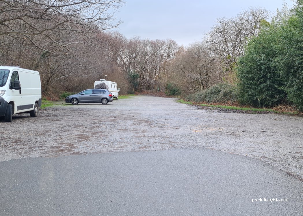 Nice parking place, turn up later when the cars have gone. Be aware it fills up fast in the morning and if you park side on you will need to turn your vehicle early in the morning to allow the cars to park. Bins at entrance.