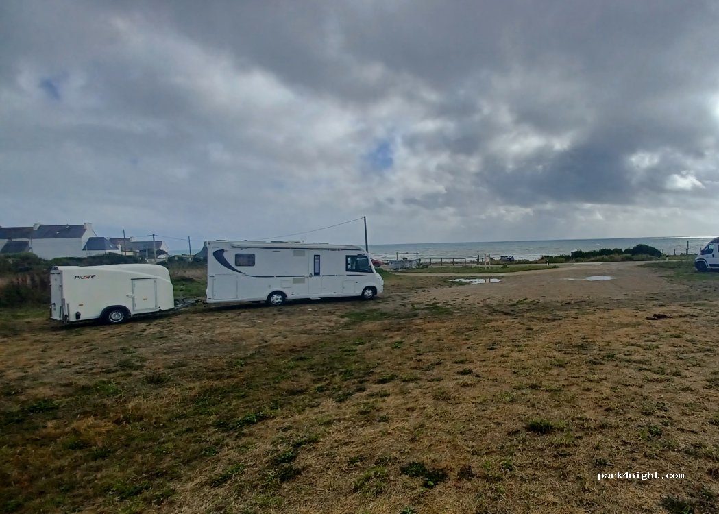 Parking sur herbes,face a la mer. plage a proximité et depart pour balade a pied ou velo. petit port cotier de pors poulan a proximité. Pas de services.