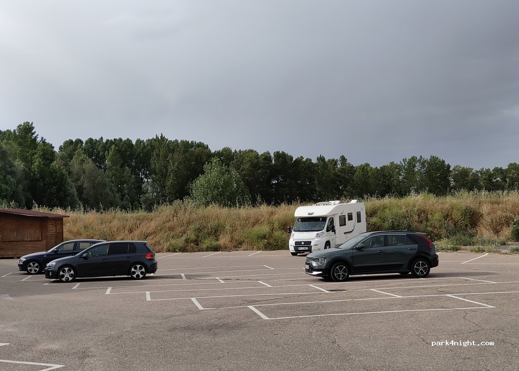 Me parece la mejor opción para aparcar AC grandes, amplio, nivelado, tranquilo. Cierto es que es el parking más retirado, si para tí 20 minutos andando al casco (aprox 1km) está lejos, pues vete a otro y vente a éste solo para pernoctar. A tener en cuenta: del 28/8 al 4/9 hay torneos de padel, ojo con esto.