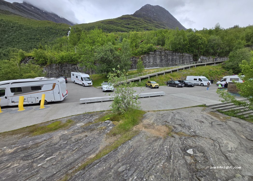Sehr schöner Blick auf den Fjord, allerdings nur vom Aussichtsplatz, nicht vom Parkplatz aus. Internet naja. Nachtparkverbot. Toiletten stark frequentiert.