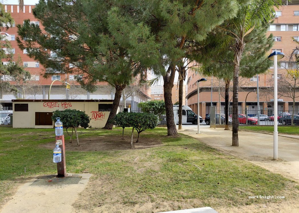 Acabamos de estar en el parque llenando agua. La fuente tiene buen caudal y es potable. Está justo entrando por la puerta donde pone “vehículos de emergencia” a la derecha. No se puede llenar directo a la furgo como tal porque la fuente está dentro del parque pero para llenar garrafa está muy bien.