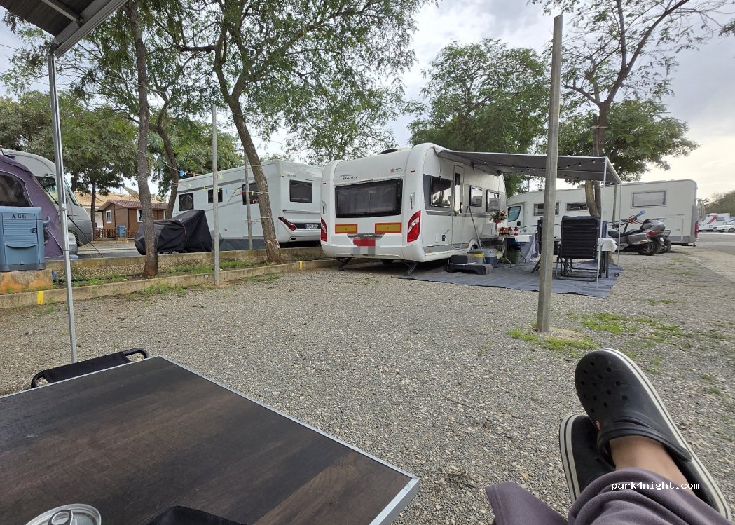 Ce n'est plus du camping mais une sardinade, le positif : camping propre, français parlé, une belle piscine, sanitaires simples mais propres, gare "SNCf" et bus à 5 minutes à pied, une gestion militaire le lidl de Travira possède 4 places de stationnement spécial camping-car attention pour le ravitaillement uniquement attention tarifs doublent pour les camping-cars de plus de 7 m,