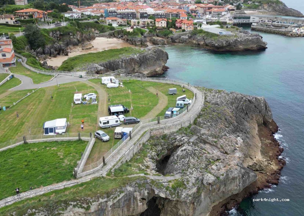 Ontvangst niet echt hartelijk. Nauwelijks of geen uitleg over faciliteiten. WiFi niet kunnen ontdekken. Geen wasmachine/droger. Uitzicht over de zee is mooi, locatie is erg rustig. Sommige sta-plekken zijn wel erg scheef. Ze laten je wel een plek kiezen, daarna pas registreren. Dit is de enige plek in Llanes om dicht bij de stad (ca 1km) een camper te parkeren