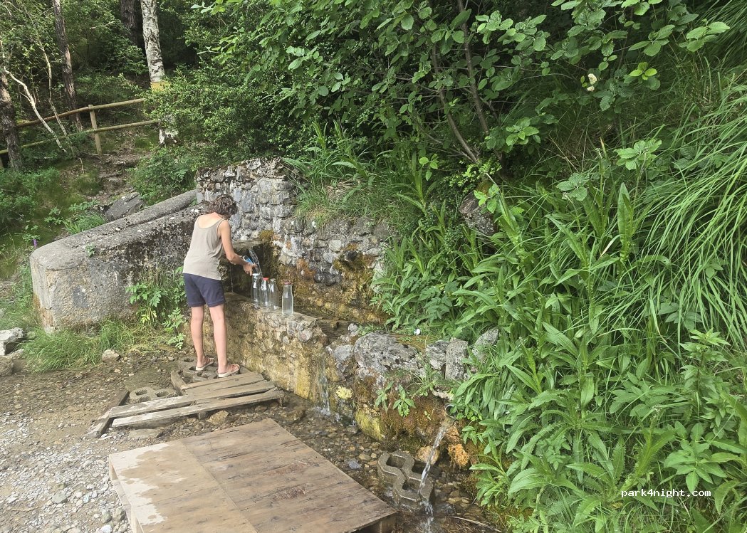Einfacher Parkplatz zum Übernachten, super gutes Wasser direkt aus dem Berg in rauen Mengen.