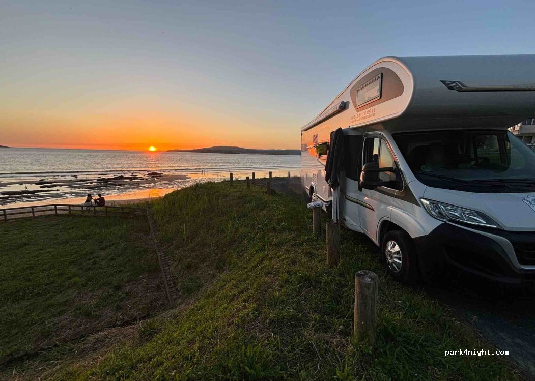 Playa preciosa! Llegamos sobre las siete de la tarde y estaba imposible aparcar, totalmente lleno y coches mal aparcados. Nos esperamos un rato y empezó a irse gente. En cuestión de media hora conseguimos aparcar. Llevo una AC de seis plazas bastante grande. Decidimos quedarnos a pasar la noche, el parking se quedó casi vacío. Pudimos aparcar donde quisimos, tuvimos un amanecer increíble.