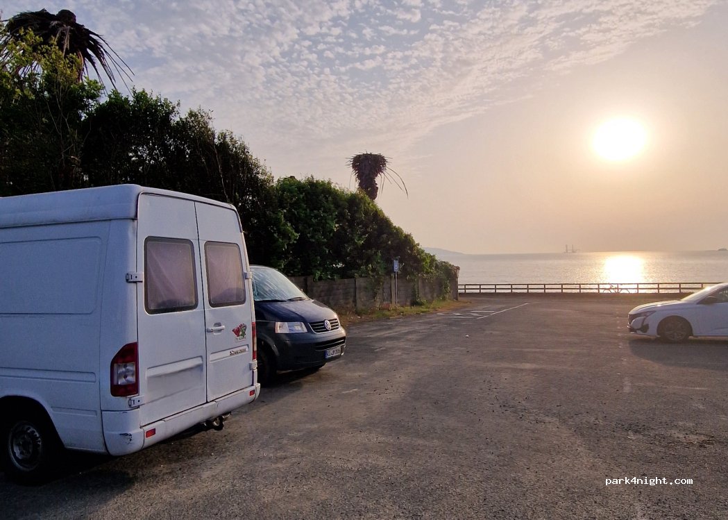 Un parking asfaltado y muy tranquilo. Hemos pasado una noche aquí y todo ha sido genial. Venir aquí si queréis dormir con las olas del mar y desayunar con un paisaje precioso.