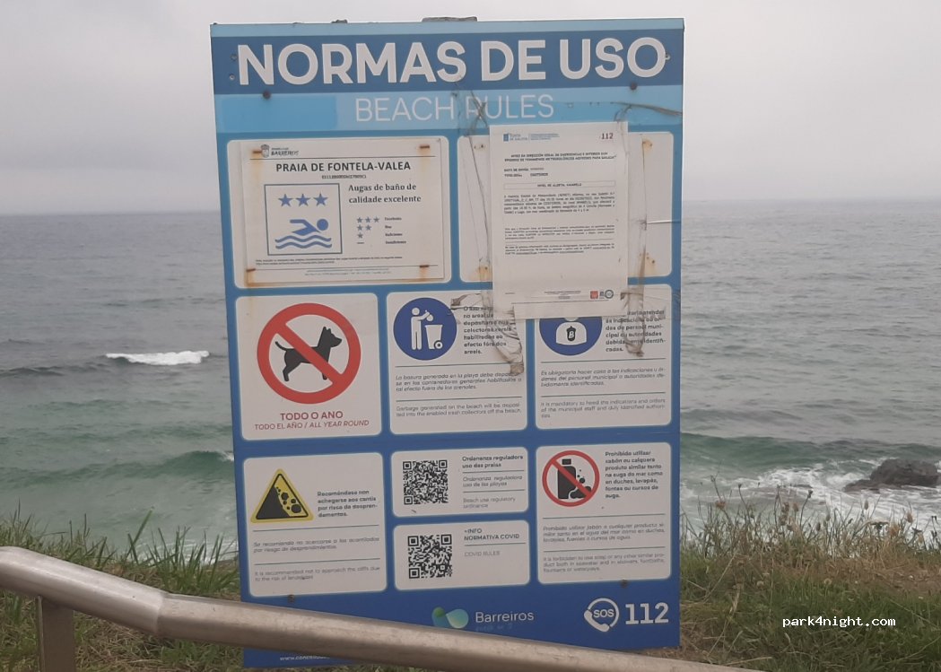 Au top grand parking gratuit en herbe au bord de l océan juste la route a traverser pour accéder à la plage belle plage avec rochers et grottes nous étions seul au monde alors que tous les autres parking étaient bondés de camping car seul bémol les quelques resto autour pas top vous pouvez continuer le long de la plage vous trouverez d autres spots simpa avec peut être plus de resto