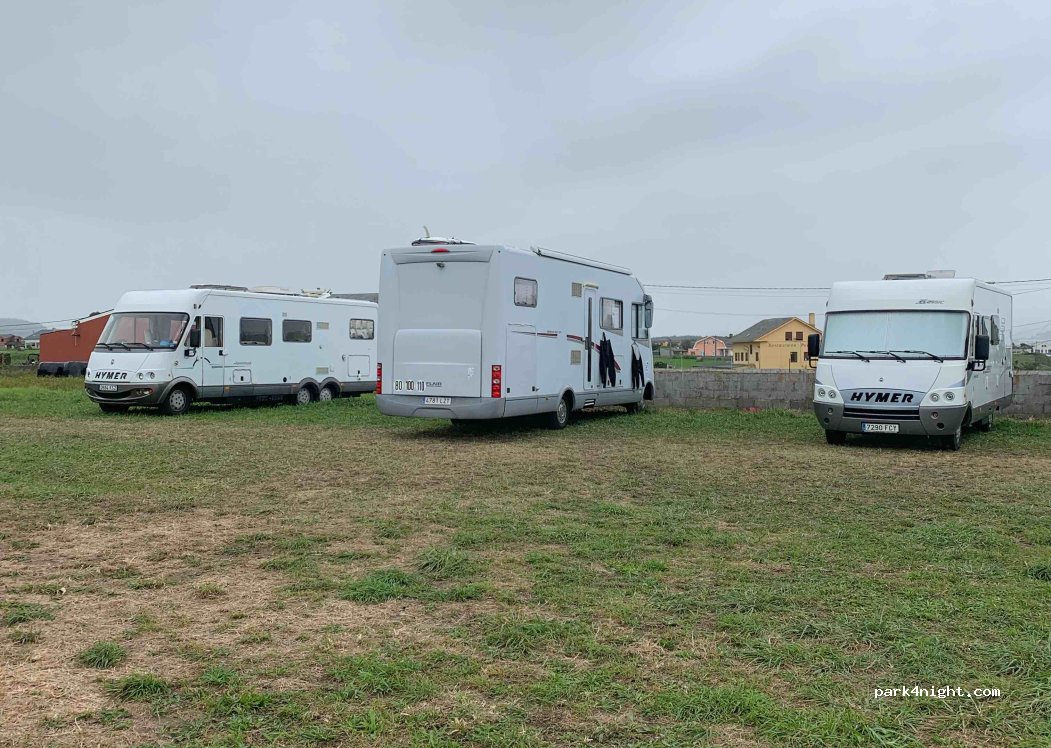 Parking amplio y bastante nivelado, al fondo en frente del maizal se duerme muy bien. Por la noche solo hay ruido de mar. No hay servicios pero si un contenedor de basura justo al salir, importante recoger la basura y no meterse en el maizal a mear como parece que ha hecho mucha gente que encima ha dejado el papel tirado…respetemos en entorno y a los vecinos.