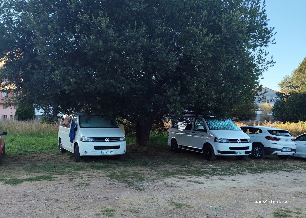 Un pequeño descampado que hemos encontrado para aparcar y pernoctar de manera gratuita con mucho espacio.