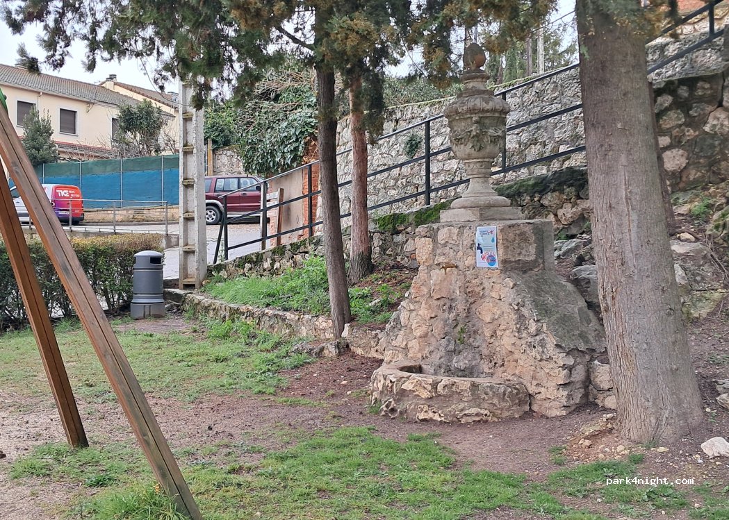 Aparcamiento publico a los pies de un bonito castillo y muy cerca del centro del pueblo. Hay fuente y un parque infantil cercano. Servicios públicos en el castillo y tienda y servicios basicos en el pueblo.