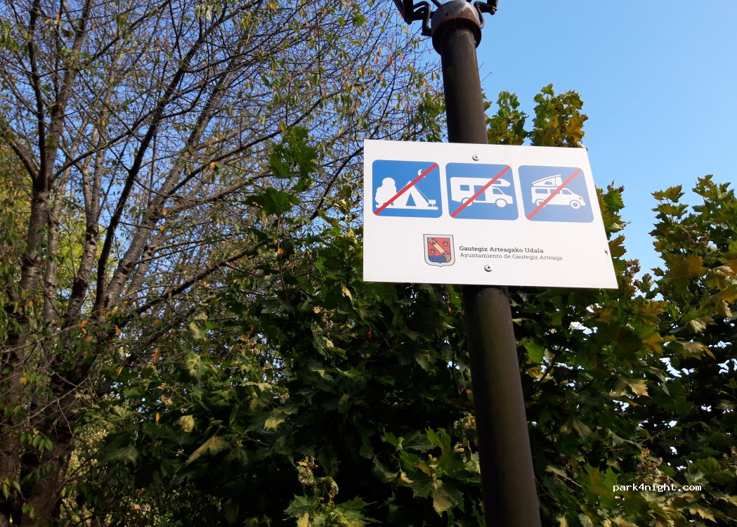 "No camping" sign, motorhomes prohibited for the night, but ok during the day.