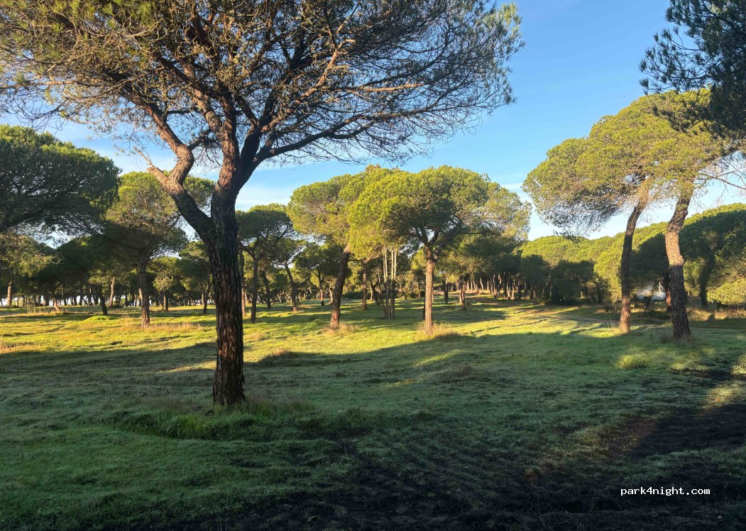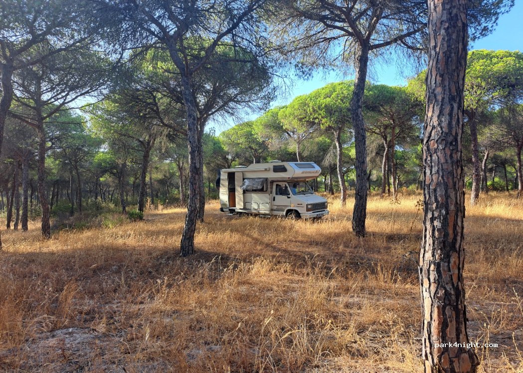 Nous nous sommes mis un peu plus vers l'hotel, mais endroit très calme avec pleins d'endroits ou se poser, bien ombragé. Pas mal de promeneurs, mais rien de dérangeant. Une plage est accessible à pied à 5 min. Dans la matinée la guardia civil a fait une ronde en voiture et est passée devant nous sans même nous regarder. Endroit parfait pour être tranquille au milieu de la pinède