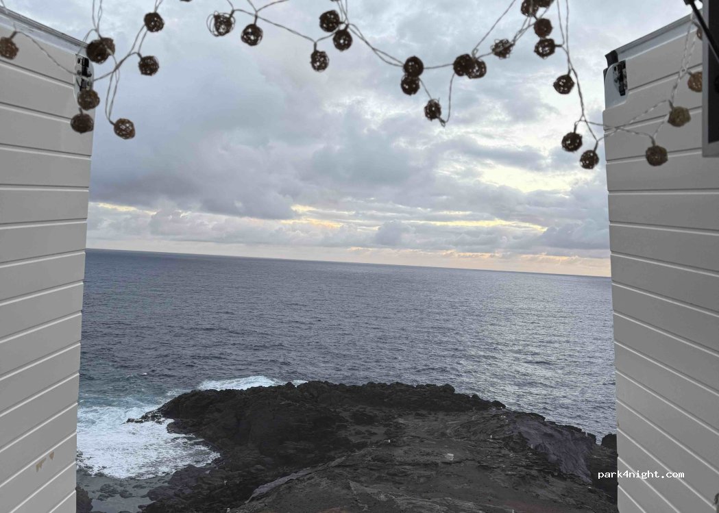Grand parking en contrebas de l'autoroute (on n'entend pas le bruit) avec le bruit de la mer pour s'endormir. Pas de service, feux de l'autoroute au dessus, malheureusement les gens y laissent parfois leurs ordures. Peu de pêcheurs sont ici pendant la journée. Accès par Google Maps trompeur, tourner à droite tout de suite après la passerelle piétonne. Bien un peu aventureux, avec Van ce n'était pas un problème.