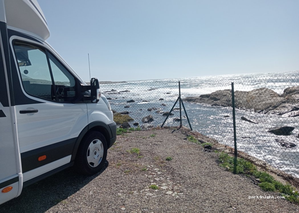 Piazzale asfaltato e perfettamente pianeggiante direttamente sul mare. Perfetto per ammirare il tramonto e trascorrere la notte in tranquillità.