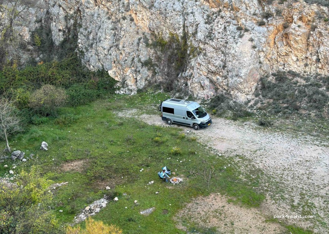 Nice place surrounded by two huge stone walls and brutal views, at the entrance of an abandoned mine, up to 7 vans, let's take care of this treasure
