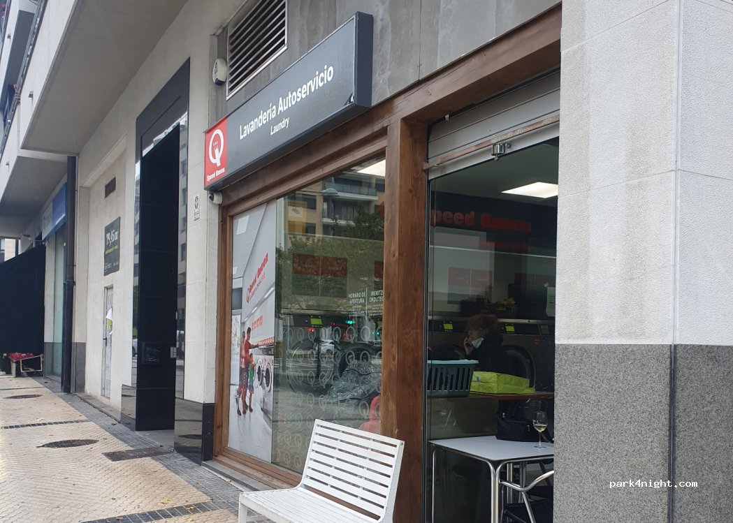 Laundromat with large washers and dryers. Close to the marked parking lot and with bars, restaurants and supermarkets next door. Easy to park and have a drink while you wait. A 20 minute walk from the beach along the promenade next to the river.