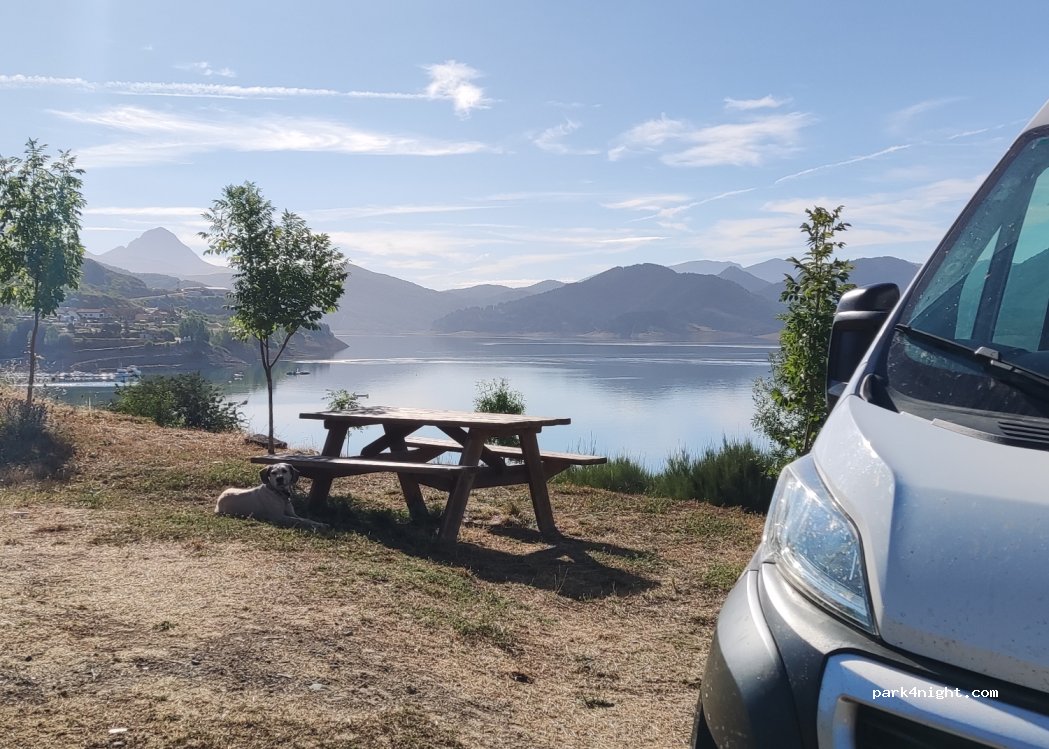 Beautiful place to eat outside the parking lot, with incredible views of the reservoir and the Fjords of León. Highly recommended, just stop to eat there quietly since there are tables for it as I show you in the photo, the day before I saw that there were vehicles sleeping there. but having the large and wonderful parking that the Riaño city council gives us, it seems out of place to sleep there.