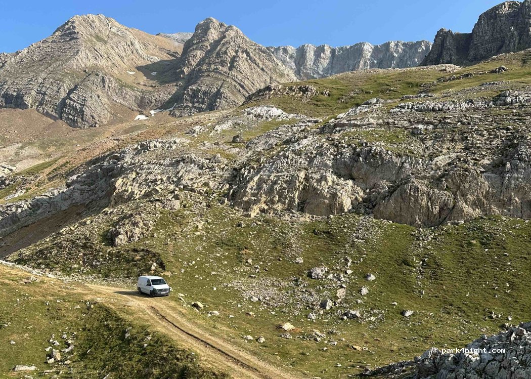 Spectacular place with views of the Ibon de Sabocos y Asnos. Only 4x4. Impossible to stop camper