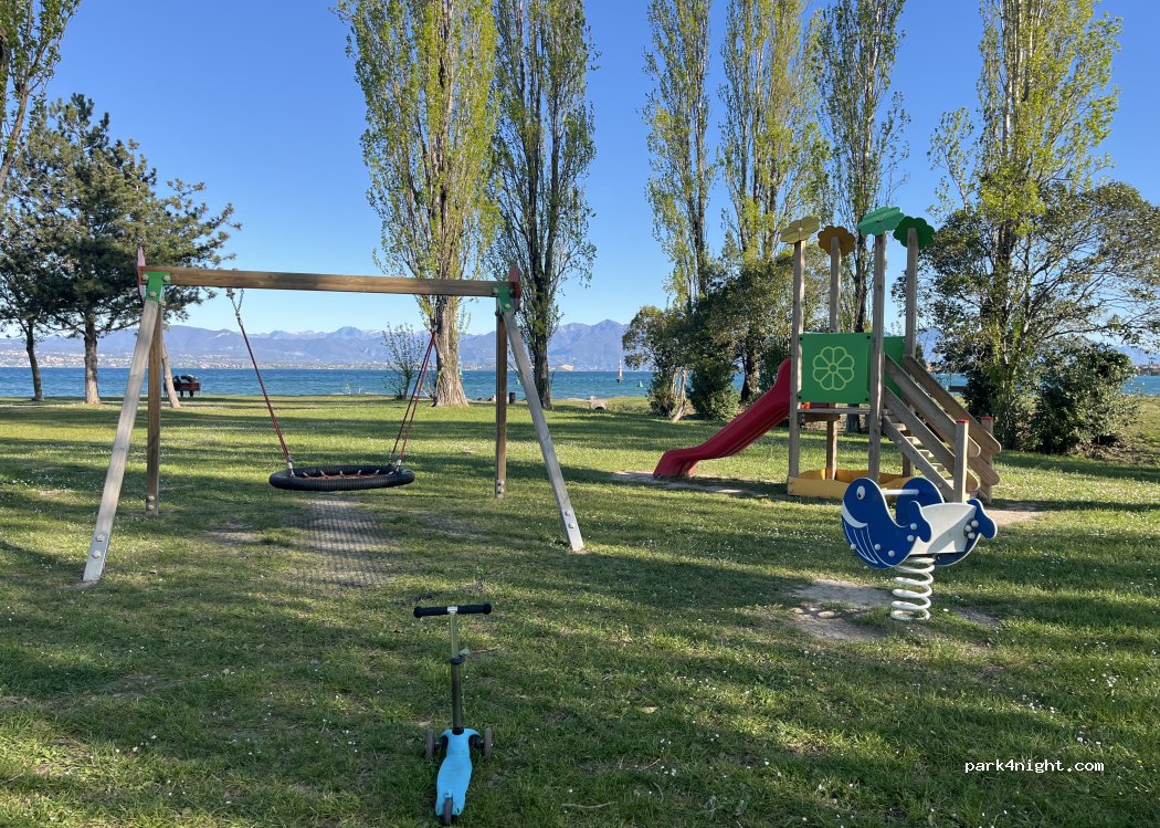 Stationnement dans la rue, gratuit, très proche du lac. Au lac vous trouverez un bar/restaurant qui propose des douches et toilettes. La nuit était calme, peu de passage dans la rue. Pour visiter Sirmione il faut pas mal marcher mais ca fait une marche agréable.