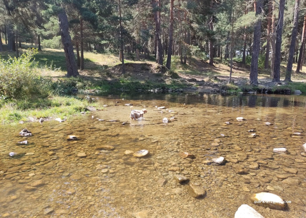 Si vas pronto encuentras sitio fácil. En esta época hay mucha gente. Está junto al río (fotografía) donde se pueden bañar los perros. En la piscina natural no dejan entrar con ellos. Para dormir al parking de arriba junto a la casa del parque.