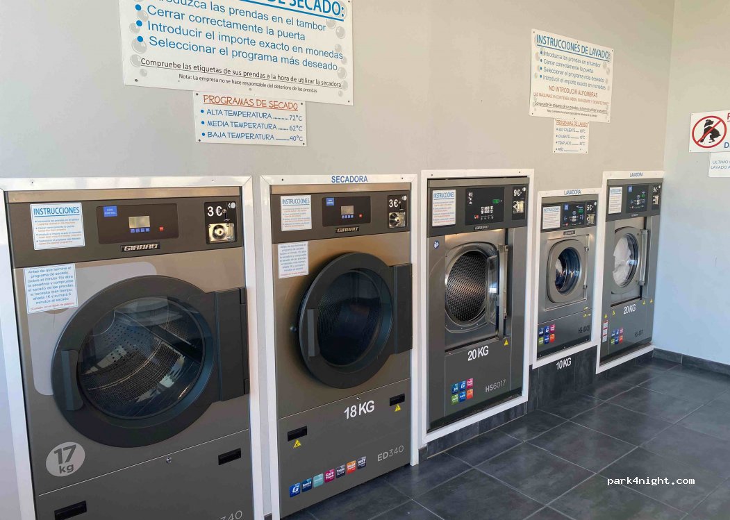 Lavanderia exprés. Lavado a partir de 5e 10kg y 9e 20kg, secado 3e. Hay un parking justo enfrente.