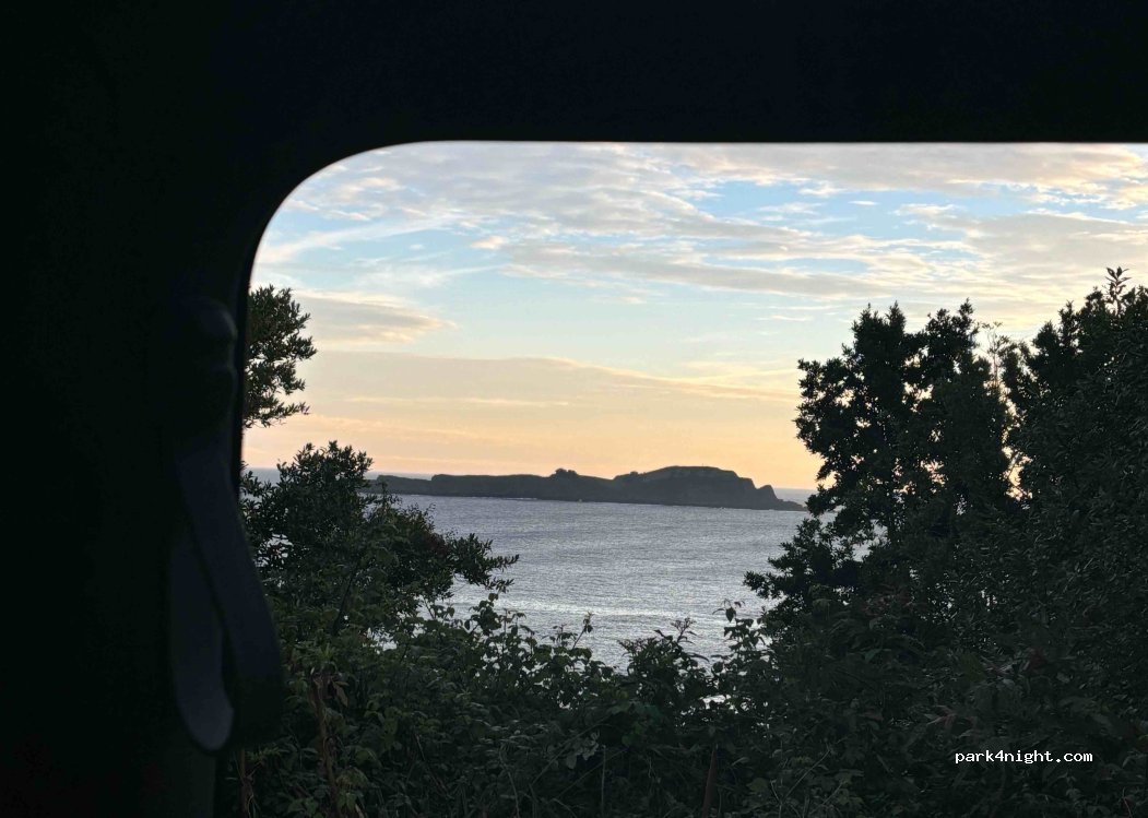 Das P Schild ist zwar sehr klein, aber wenn man es sieht geht es rechts gleich steil runter. Auf die Schlaglöcher aufpassen. Und dann erblickt man links und rechts viel Platz zum Parken und um eine Nacht dort zu verbringen. Man hat direkten Blick aufs Meer und der Orr ist wenige Gehminuten entfernt. Die Autos oben auf der Straße sind kaum hörbar und man ist gut abgeschottet