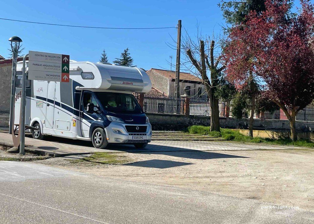 Parking cerca del centro de interpretación de atapuerca, agua potable y frente un supermercado muy surtido que regenta José ernesto y tiene de todo un poco, excelente sitio para dormir.