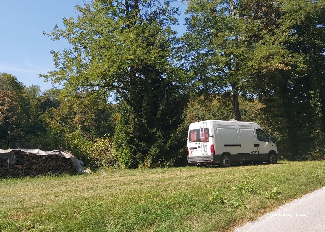 Parking d'un restaurant. Le restaurant était fermé à mon arrivée. J'ai pu rester toute la nuit et toute la matinée, personne n'est venu vérifier. C'est à côté d'une route mais il n'y a pas beaucoup de circulation. Pas le meilleur mais correct pour une nuit.
