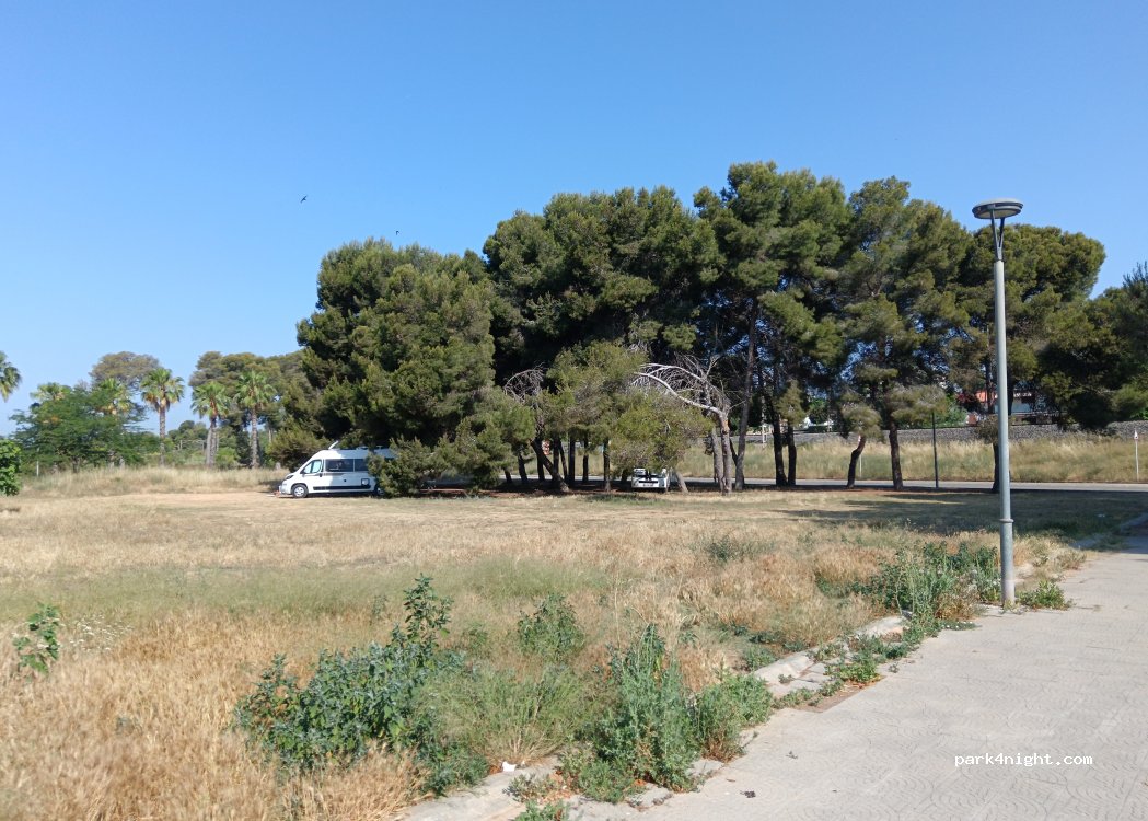 Es una zona verde que en épocas de verano se llena de coches con las consabidas consecuencias: basura y defecaciones a mansalva. Sin embargo es raro que la policía lo desaloje y a pesar del tren y la carretera, en épocas más tranquilas puede ser una opción, aunque en esas épocas hay otras zonas más tranquilas y mejor situadas