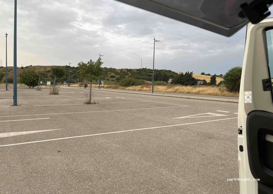 Parking next to the sports facilities and the river, very quiet and without signs of a bottle, no prohibition sign for motorhomes, toilets in the athletics stadium, gas station right in front and supermarket nearby. Indoor swimming pool within walking distance in about 7 minutes.