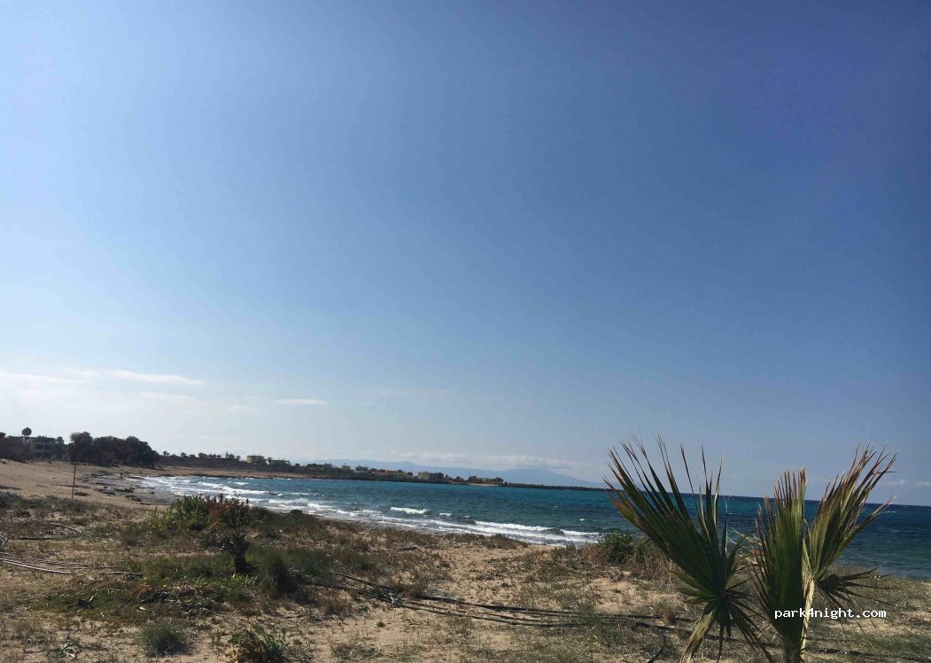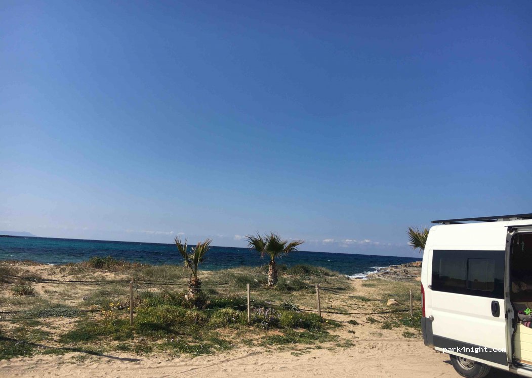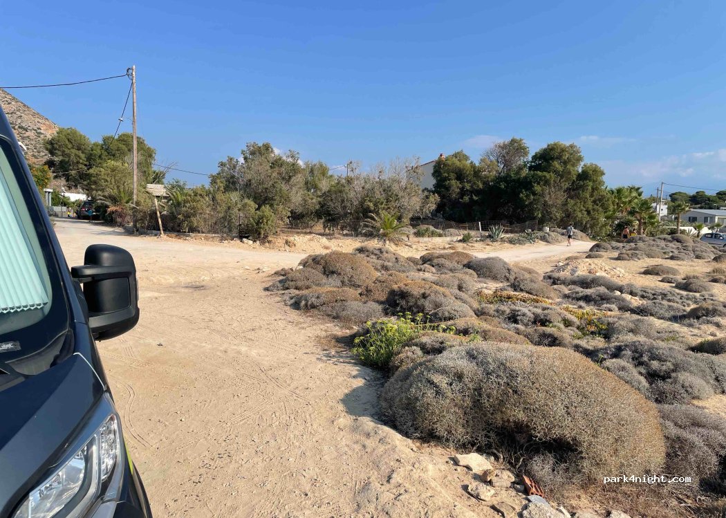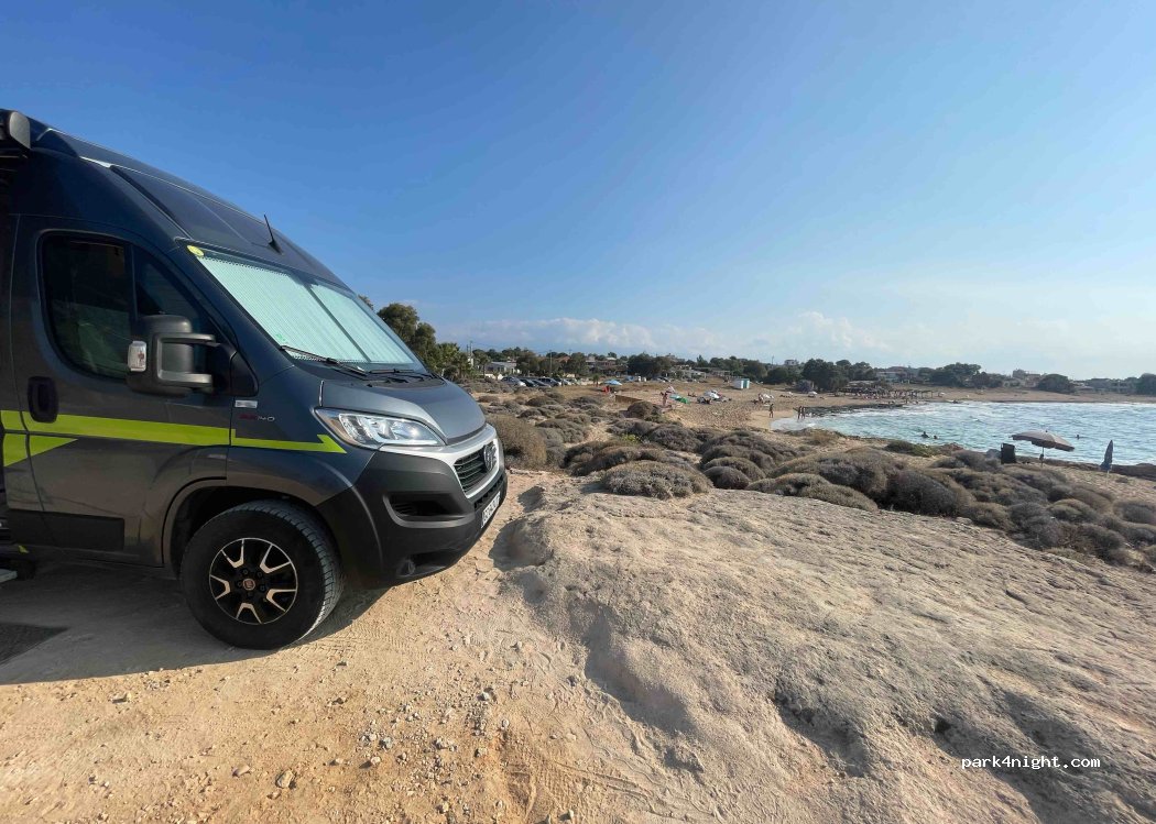 Ampio parcheggio in spiaggia, tranquillo di notte. Docce in spiaggia. Bella piscina naturale di roccia sul lato destro della spiaggia. Non affollato.
