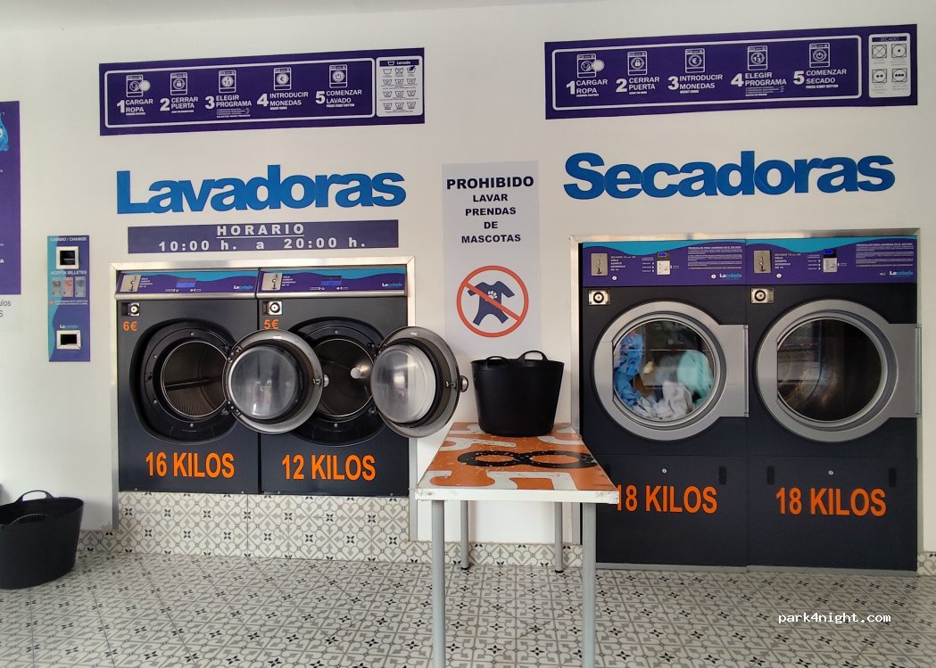 Clean but only 2 washers and 2 dryers. Some street parking. We found space with it 6.6m motorhome.