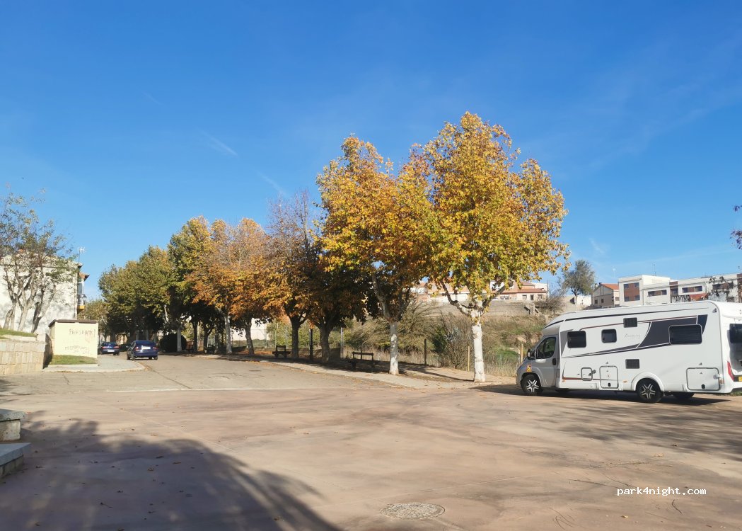 Zona de estacionamiento y pernocta reconocida en el pueblo. Dispone de fuentes públicas. Bien iluminada. Hemos pasado la noche muy tranquilos pero estábamos solos y eso a mí me impone un poco ya que descanso mejor si coincidimos con otra-as caravana-s. Gente del pueblo muy amable.