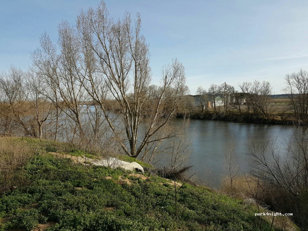 Paramos para dormir ya que queda de espaldas al pueblo. A primera hora y de noche va gente paseando sus perros pero no nos dijeron nada. Por la noche el sitio es tranquilo. Está asfaltado. Hay una zona con mas pendiente y con menos pendiente. Tambien hay un sitio sin asfaltar justo delante del rio. Cabe una autocaravana sin problema aparcando marcha atras (se puede maniobrar)