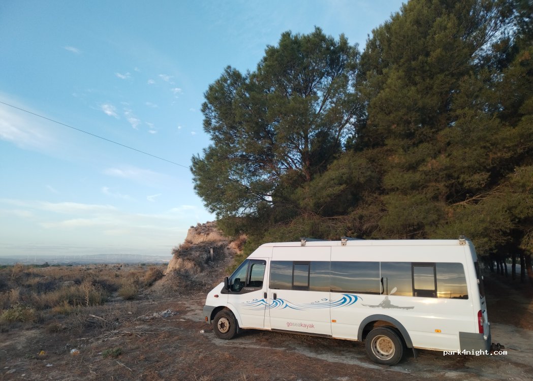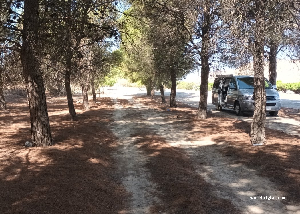 Área de descanso al costado de ruta secundaria. Tiene papeleras y buena sombra para parar por la noche o hacer un descanso en viaje. Se encuentra cerca de un polígono industrial. No tiene mesas para comer.