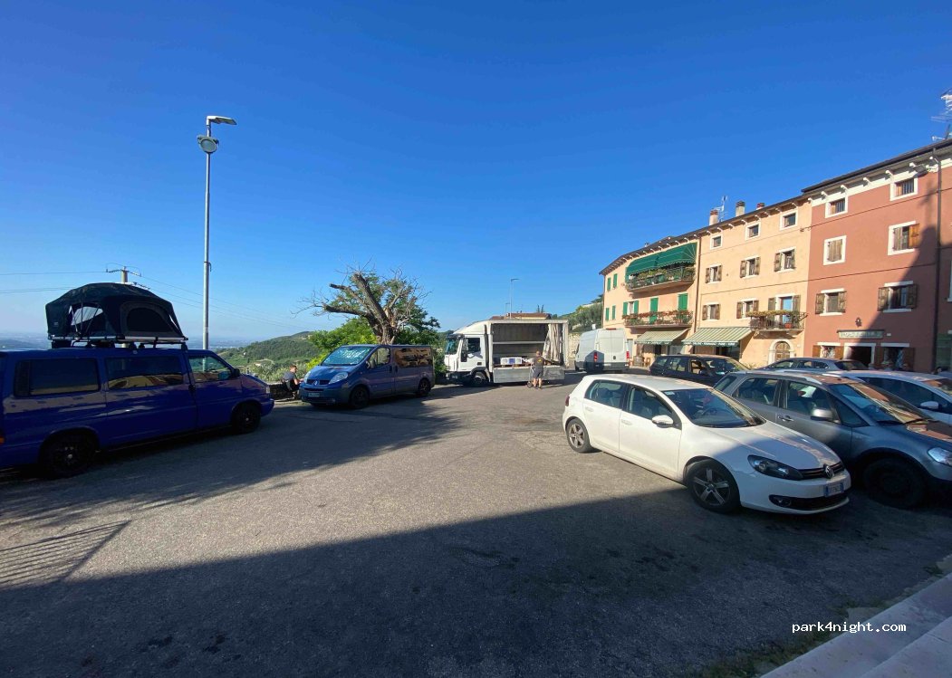 A public parking lot in the small village "Torbe" directly on the Strada del vino in the middle of Italian vineyards. There is little traffic on the road. Directly across from the parking lot are a wine shop, an osteria and a trattoria, which has already won several awards. The view over the vineyards is fantastic.