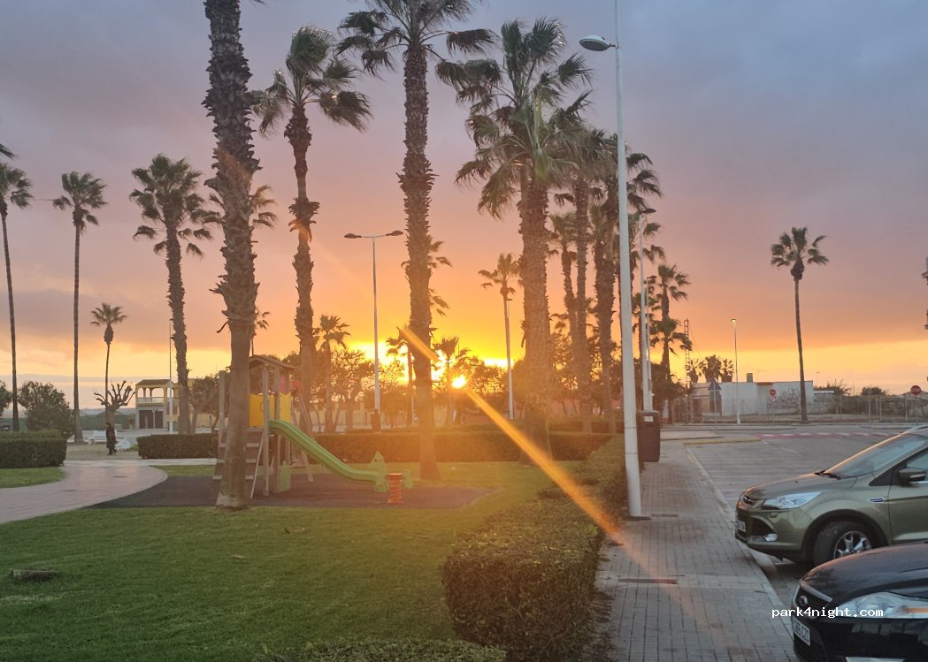 Wir haben hier auf dem Hin- und Rückweg nach Andalusien geschlafen. In der Nebensaison super, aber direkt neben Häusern. Park, Spielplatz, funktionierende Strandduschen, Strand, Mülleimer - alles direkt vor Ort. Haben an den Picknicktischen mit Blick aufs Meer gefrühstückt. Ort ist noch recht ausgestorben, in der Saison aber sicher anders. Für 1-2 Nächte absolut top!
