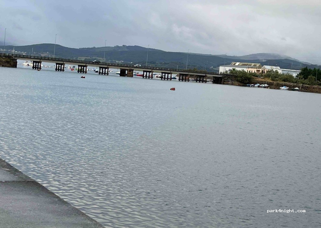 Aparcamiento en una calle del polígono. Nada de tráfico por la noche, pero sí llegan algunos pescadores. A nosotros se nos pusieron unos pescadores al lado de la furgo a gritar y tuvimos que movernos a las 4 de la mañana. Lo mejor el albergue juvenil que hay a 5 minutos andando donde te puedes DUCHAR por 1,03€.