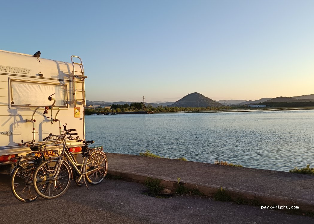Un sitio genial en el que hay espacio (octubre) y tienes el centro de la ciudad a unos 13min andando. Había algunas AC, con algunos pescadores. Además tiene unas vistas fantásticas.