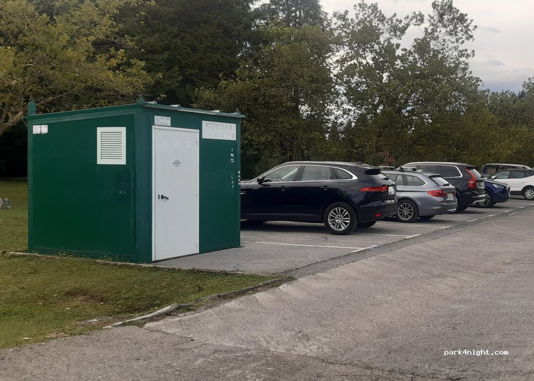 Parking 2 km avant celui ci-dessus. Tables, sanitaires, fontaine et barbecues. Choisissez bien l'emplacement pour les AC car il y a des pierres qui limitent la longueur.