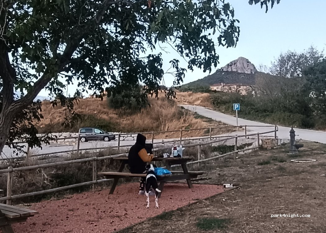 Pàrquing grande, fácil acceso, dos mesas de picnic y fuente con agua. Bonitas vistas. ATENCIÓN: ganado con un pastor muy majo.