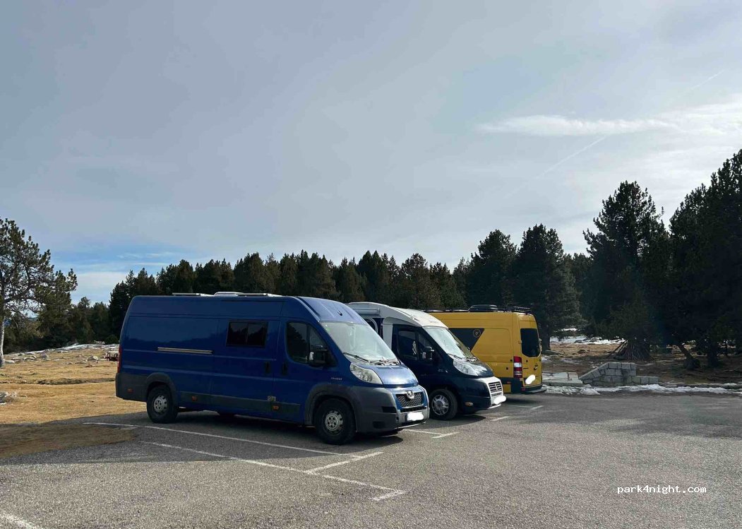 Parking de la estación de esquí de fondo de Lles. Espectacular entorno, amplio y libre para aparcar y dormir sin restricciones. Accesos aceptables. Ningún servicio público.