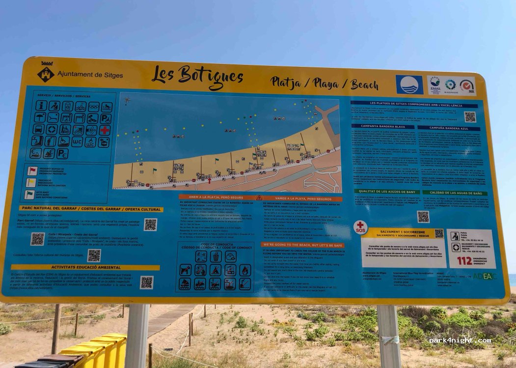 Aparcamiento junto a la playa. Aquí hay aparcadas algunas autocaravanas y furgonetas. Junto al spot de surf. Tienes que llegar temprano en la mañana o tarde en la noche para conseguir un asiento porque hay mucha gente. Hay música hasta aproximadamente la 1 a.m. en un café / bar local. No se permiten perros en la playa, pero muchas personas pasean a sus perros por la playa por la mañana. Hay duchas de playa al aire libre
