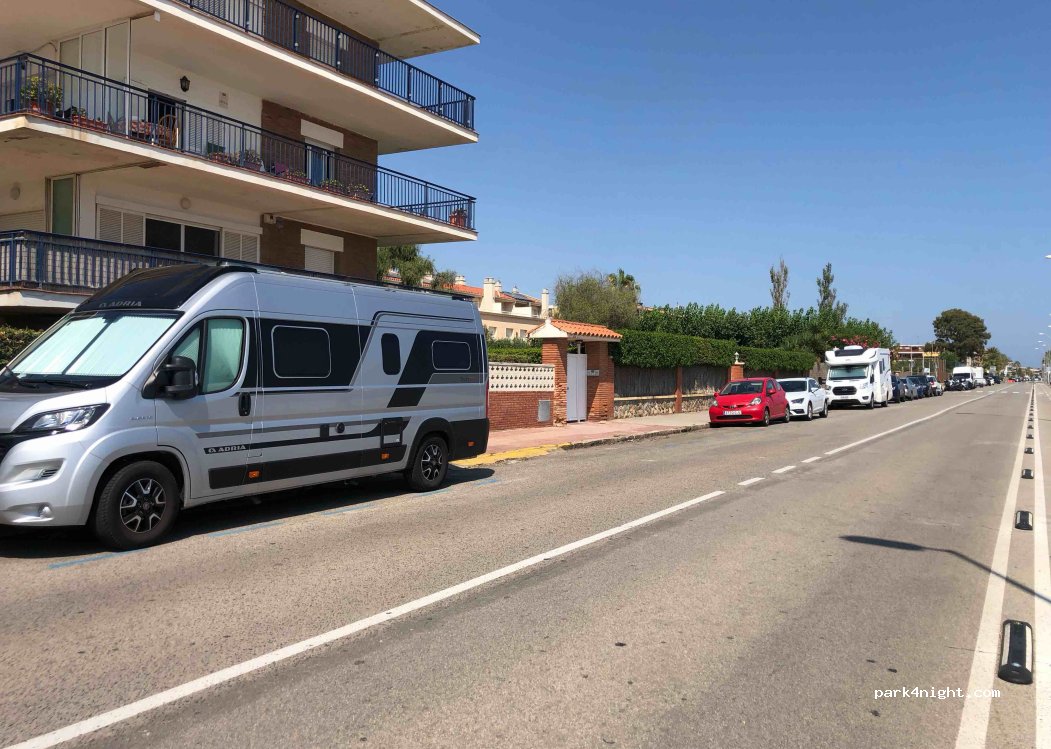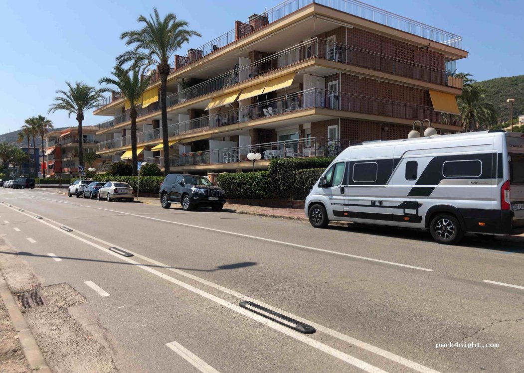 Hier parkst du am Straßenrand, leider schräg abfallend. Abends und nachts wenig los, bis auf schnelle Autos und Busse, die am Van vorbeidonnern. Morgens (Feiertag) schon früh sehr viel los (Autos, Fußgänger, Radfahrer). Für eine Nacht Ok. Belohnt wirst du mit Meerblick und wundervollem Sonnenaufgang über dem Meer.