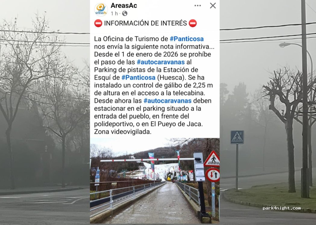 Control de altura desde enero 2026. Parking de pistas cuenta con un gálibo de altura máxima de 2,25 m. Los vehículos que superen dicha altura, pueden estacionar en el parking situado a la entrada del pueblo o en el parking de El Pueyo de Jaca. Vamos...a tomar por saco a la derecha. Autocaravanas no pueden acceder. Puedes aparcar a 15 minutos andando lo más cercano. Una pena...
